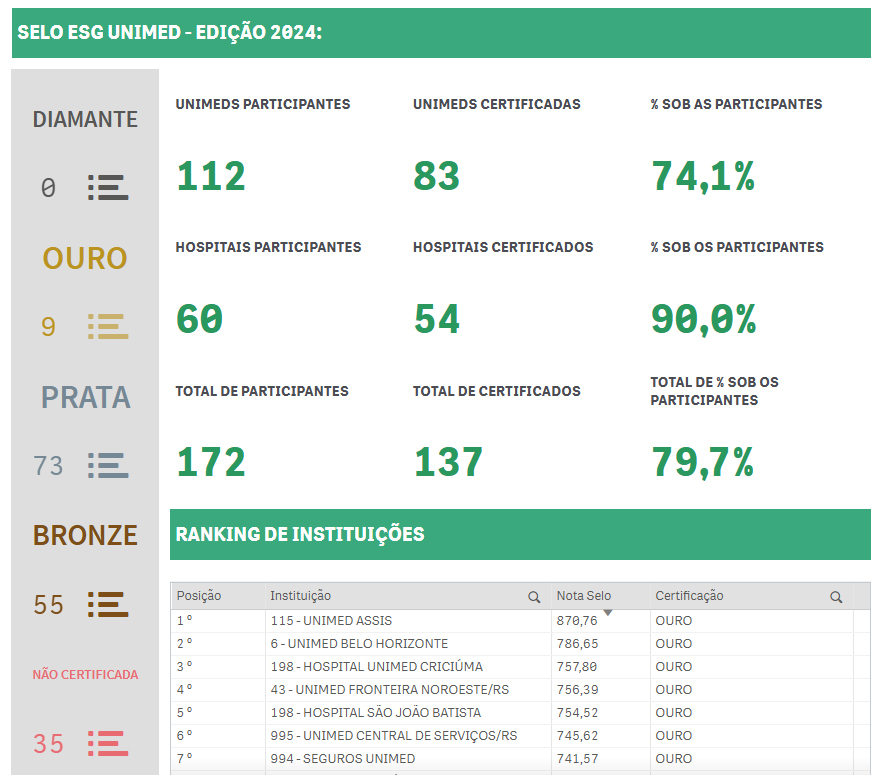 Baseado em padrões nacionais e internacionais, como o ISE B3 e o Pacto Global da ONU, a certificação da Unimed do Brasil tem como objetivo fortalecer o maior Sistema Cooperativista de Saúde do mundo, impulsionando a adoção de boas práticas ESG um requisito cada vez mais valorizado por todas as partes interessadas.